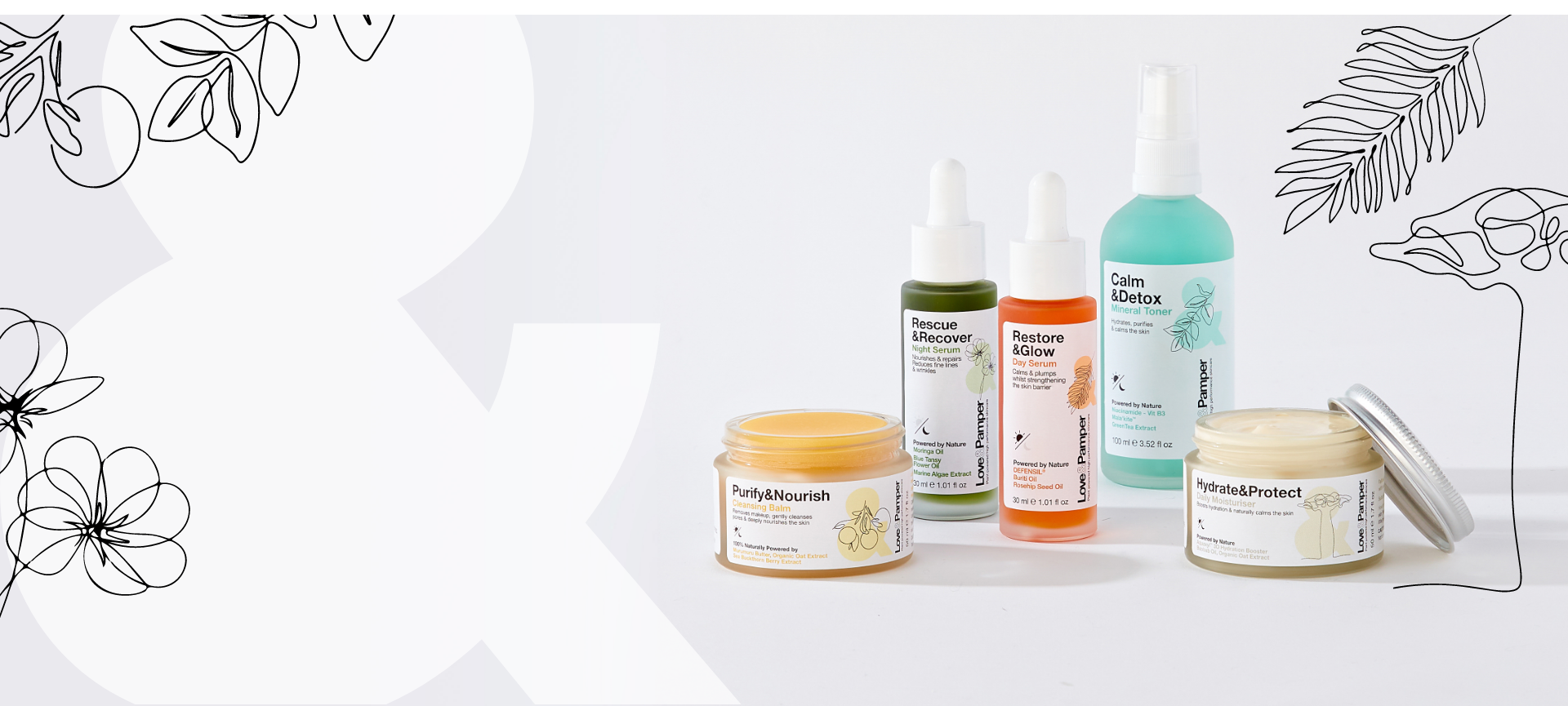Daily pollution and environmental stress can weaken our skin barrier. At Love&Pamper we have developed gentle but effective plant based High performance skincare using active botanical extracts. These can help to calm, nourish and protect your skin so that you achieve a healthy glow and your skin feels Loved & Pampered.